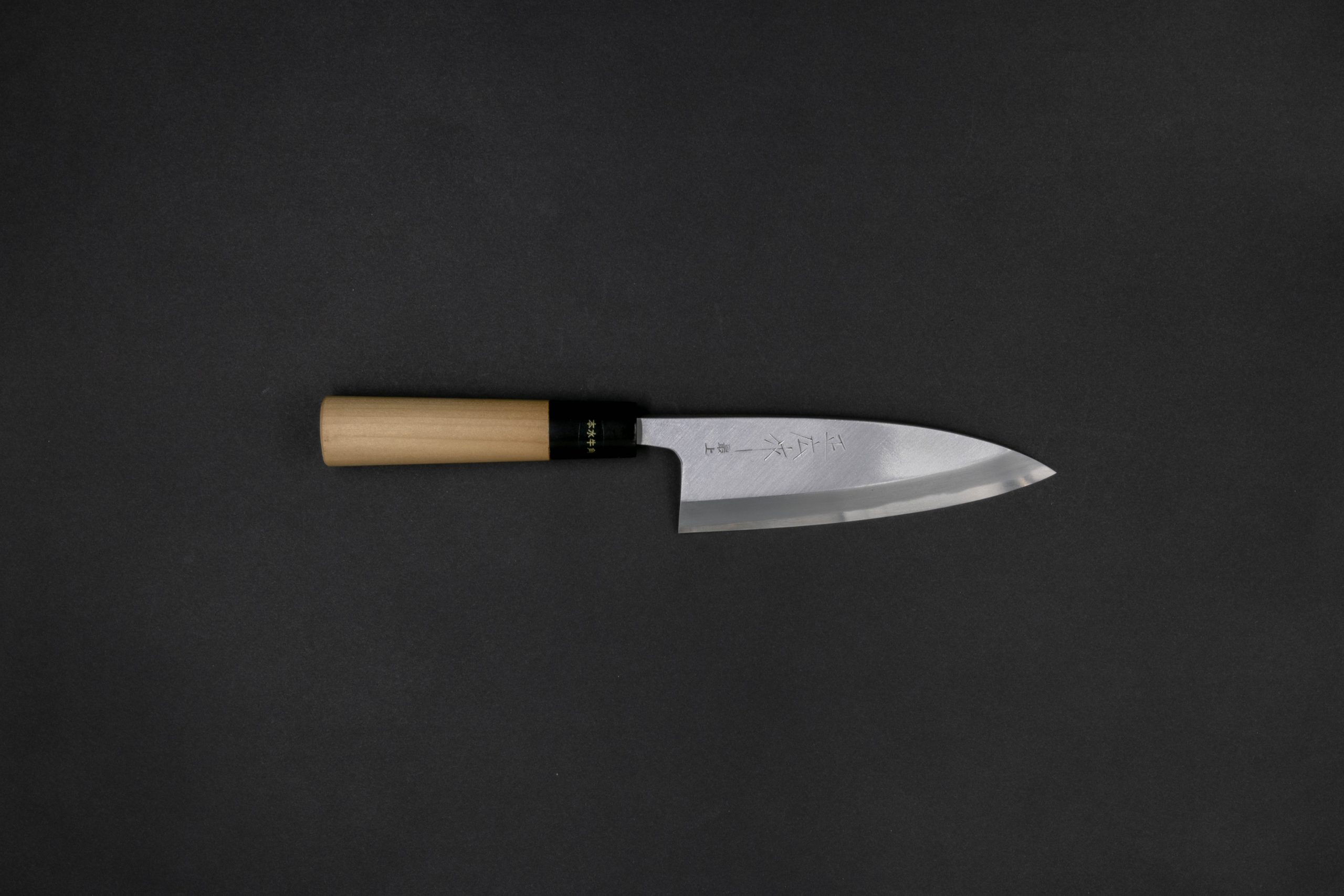 Das Deba 165 ist ein kompaktes, kräftiges Messer für präzise Schneidarbeiten. Die Klinge aus Carbonstahl bietet eine sehr scharfe Schneide und das typische, direkte Gefühl eines einseitigen Schliffs. Trotz der kurzen Länge bringt das Messer genug Gewicht mit, um stabil und kontrolliert zu arbeiten.